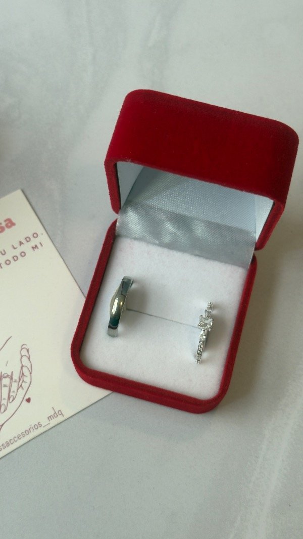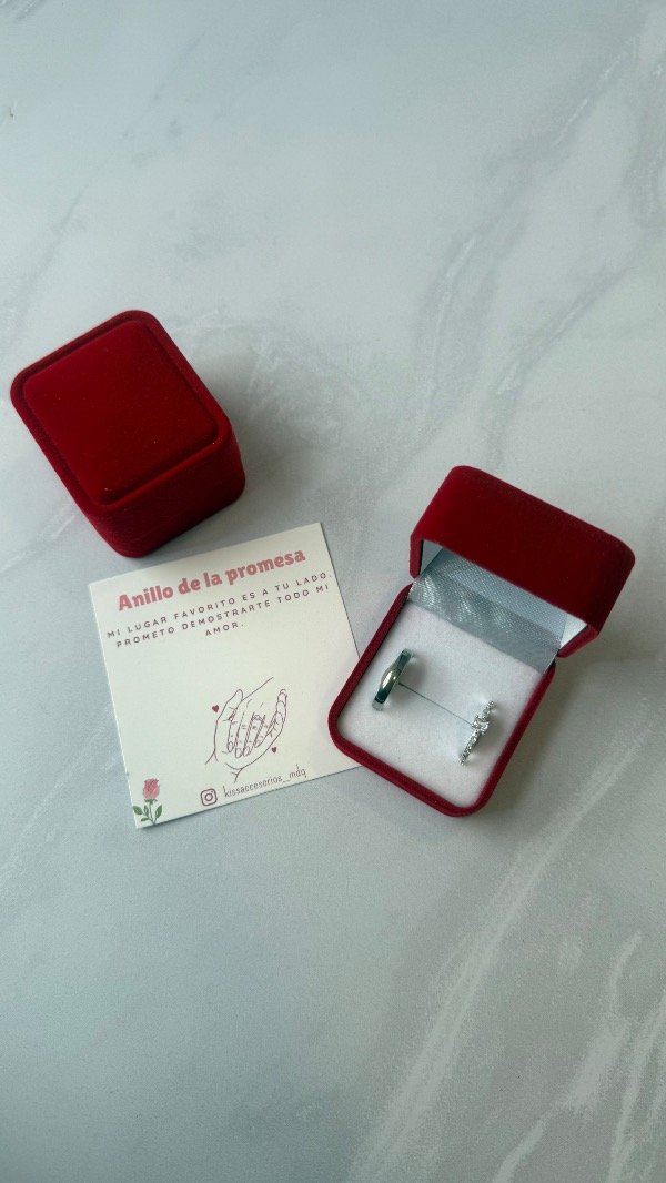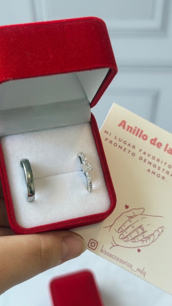 Caja de anillos de la promesa - Alianza + anillo cubic rectangular