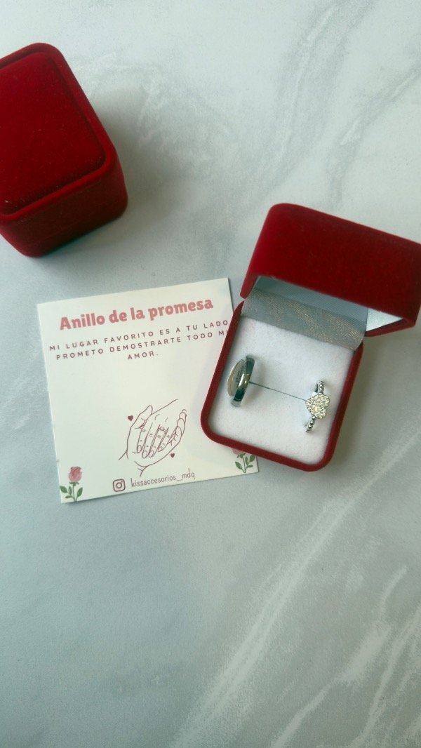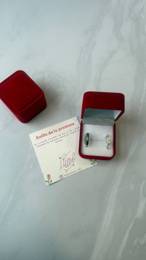 Caja de anillos de la promesa alianza + corazón con cubics