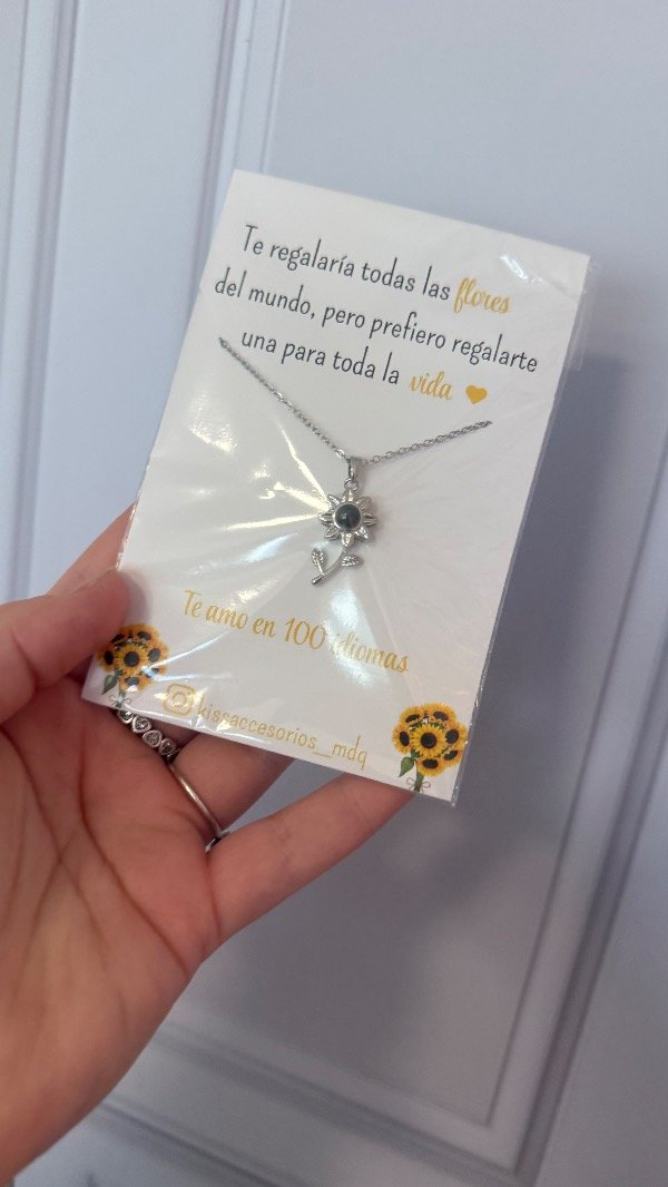 Collar 100 idiomas en forma de girasol plateado