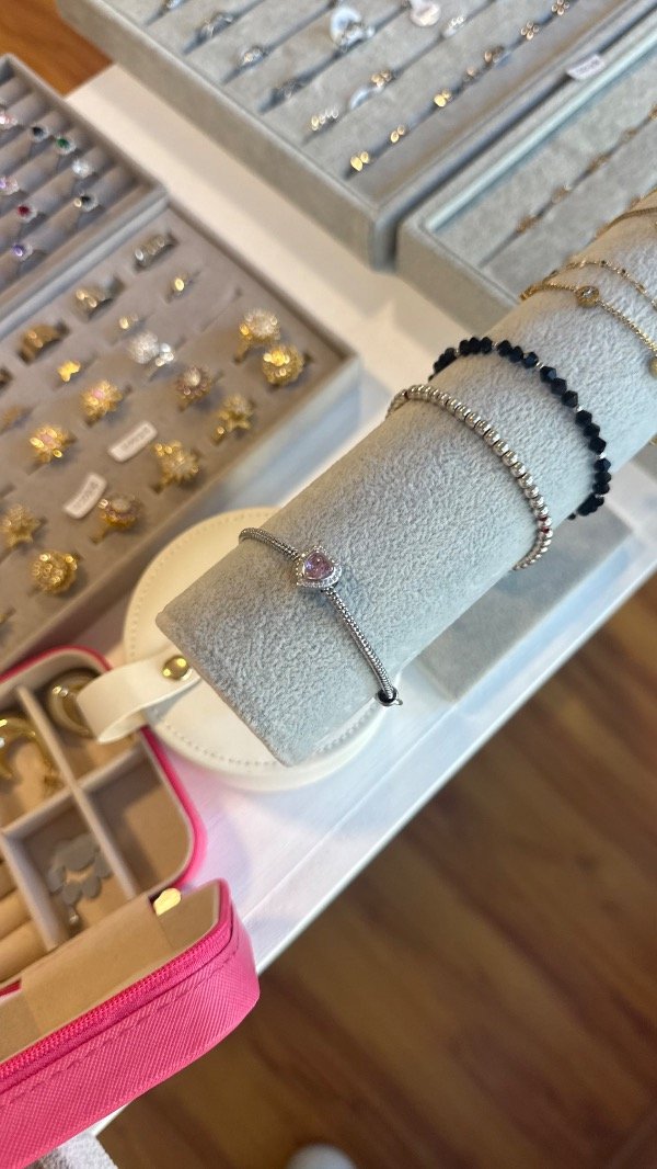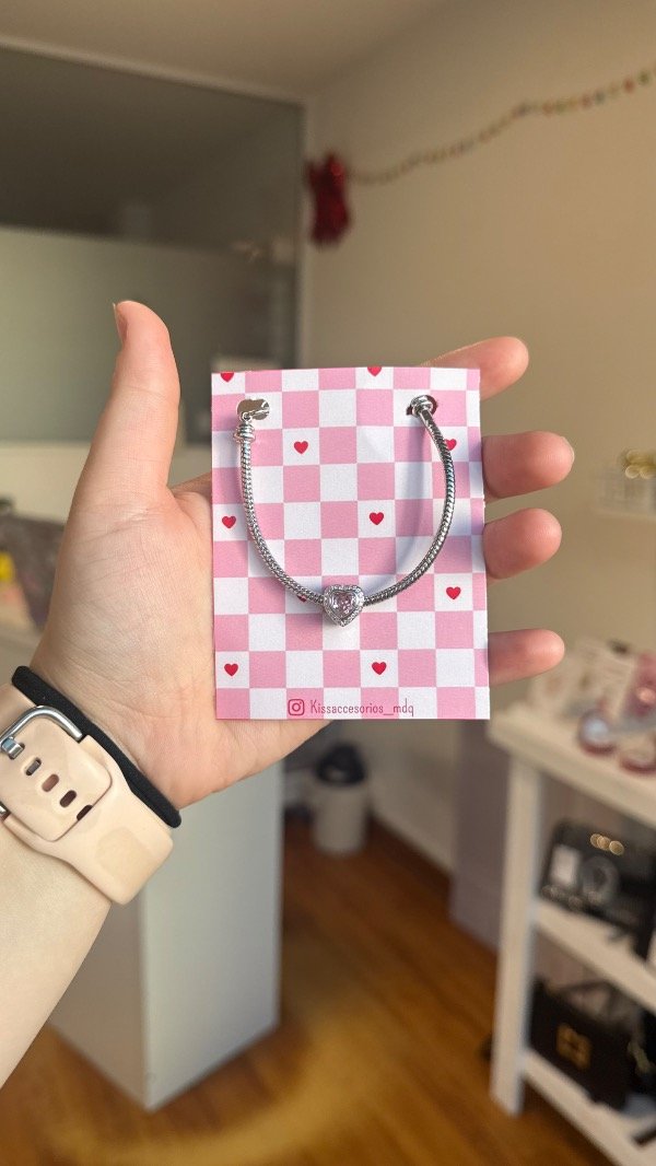 Pulsera tipo Pandora con caharm rosa
